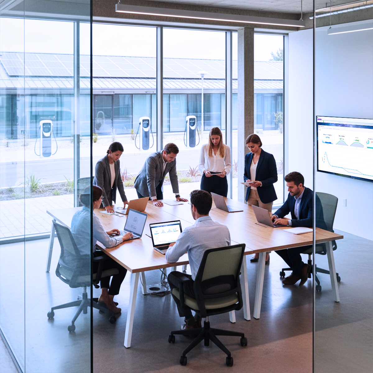 tricoma.energy steuert Mitarbeiterladen, optimiert PV-Eigenverbrauch und integriert smarte Gebäudesteuerung direkt in dein tricoma ERP-System.Energiemanagement für Büroparks & Business Center.